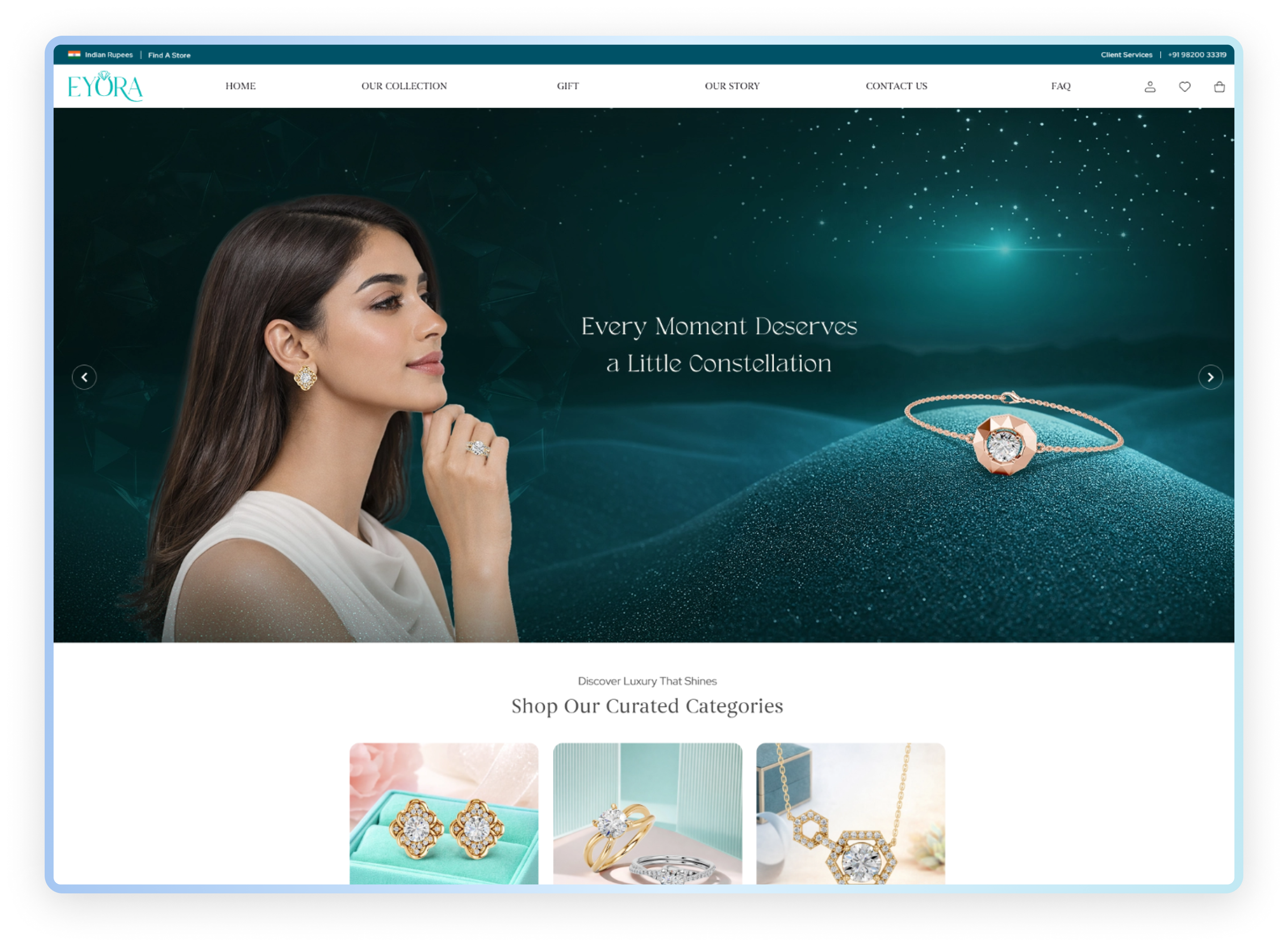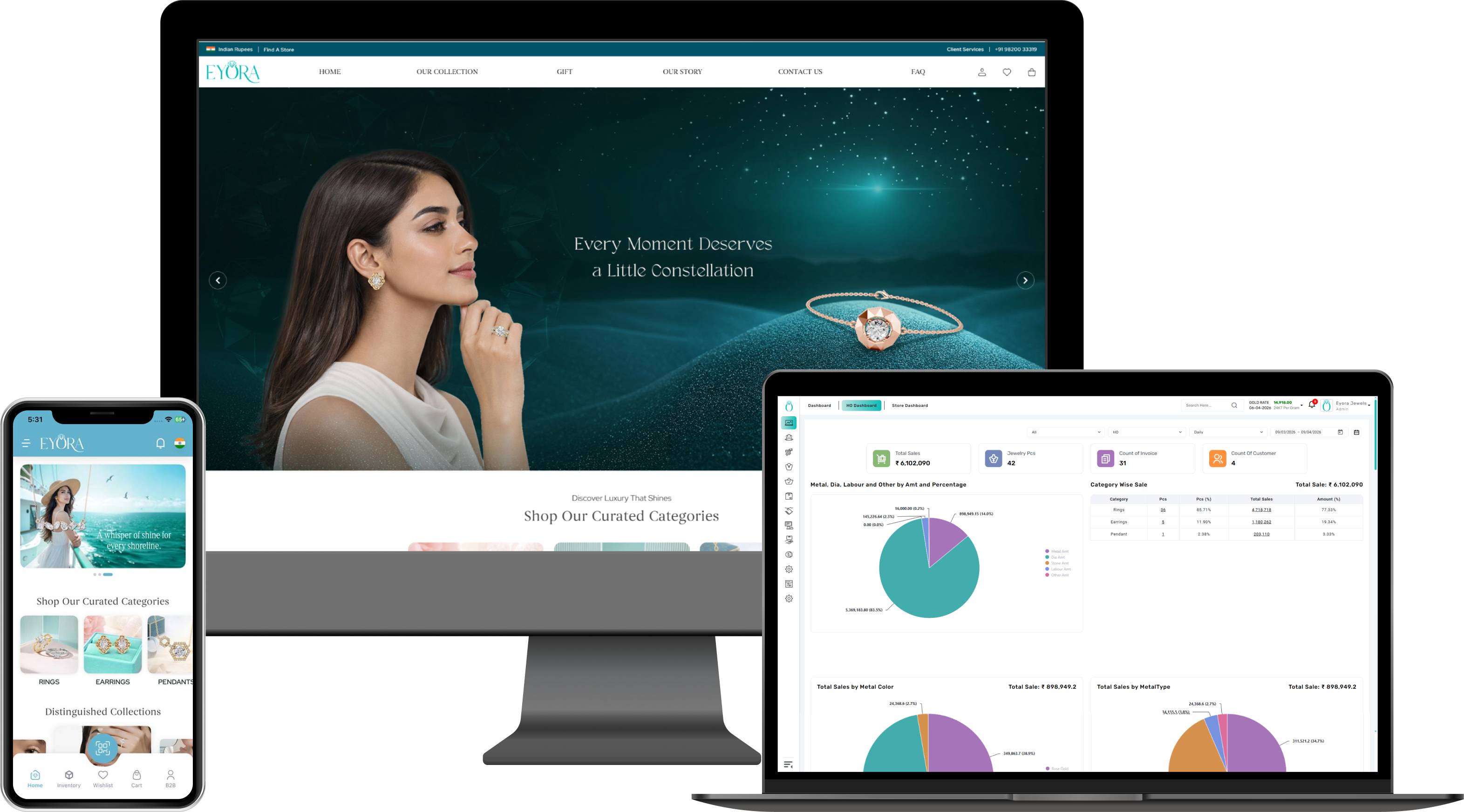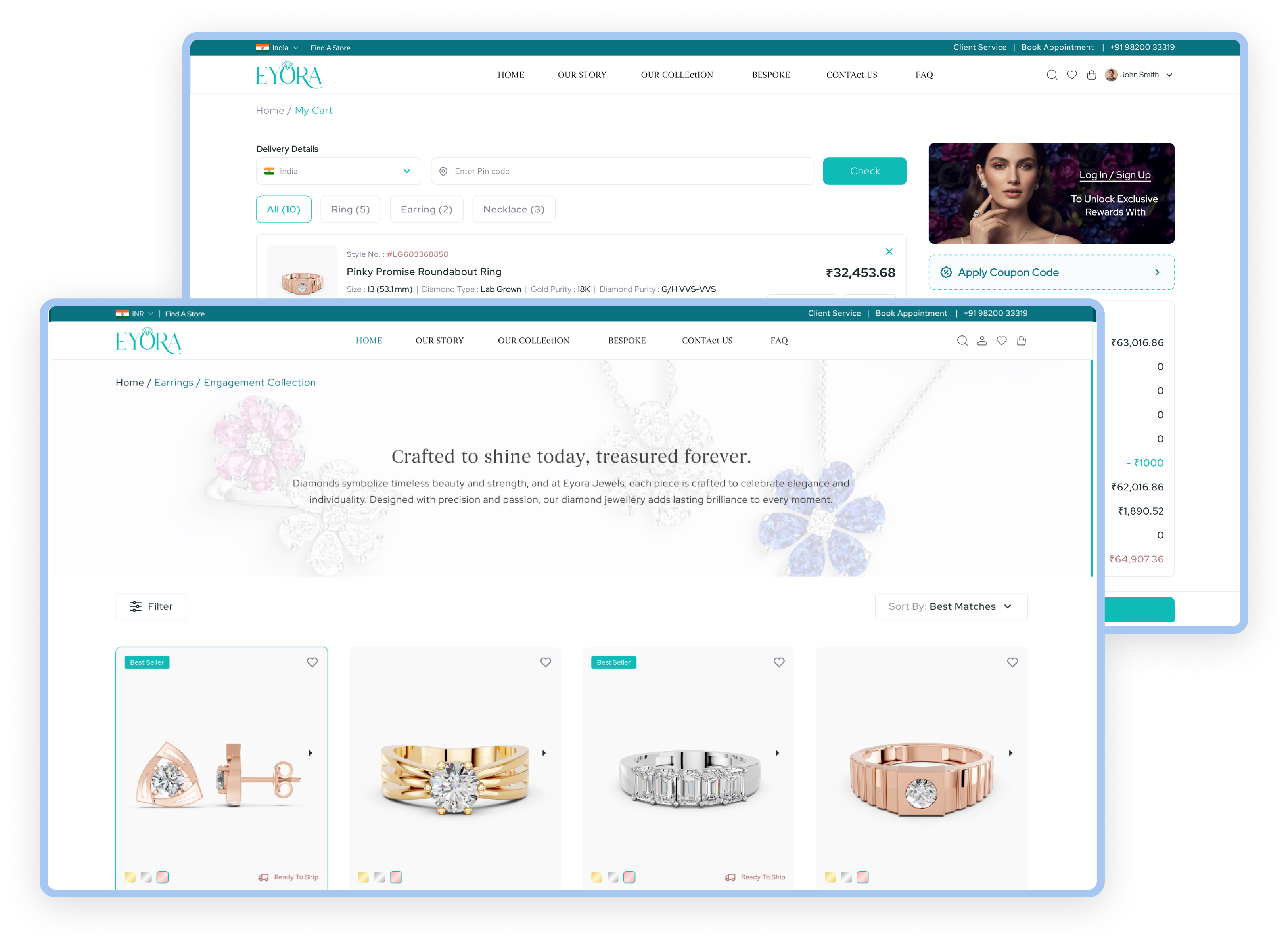 For the development of the Eyora Jewels platform, Upstair Technologies delivered a comprehensive B2B eCommerce solution tailored for the jewellery industry. We built a robust, responsive system that enables jewellers to register, customize products, and place made-to-order requests with ease. The platform includes advanced customization workflows, real-time inventory management, and seamless order tracking to ensure accuracy and efficiency. Additionally, we developed a centralized admin panel for managing products, jeweller accounts, pricing, and operations. The system enhances communication, reduces manual errors, and provides complete transparency across the order lifecycle. Designed with scalability and performance in mind, this solution empowers jewellery businesses to streamline operations, improve productivity, and support long-term digital growth.